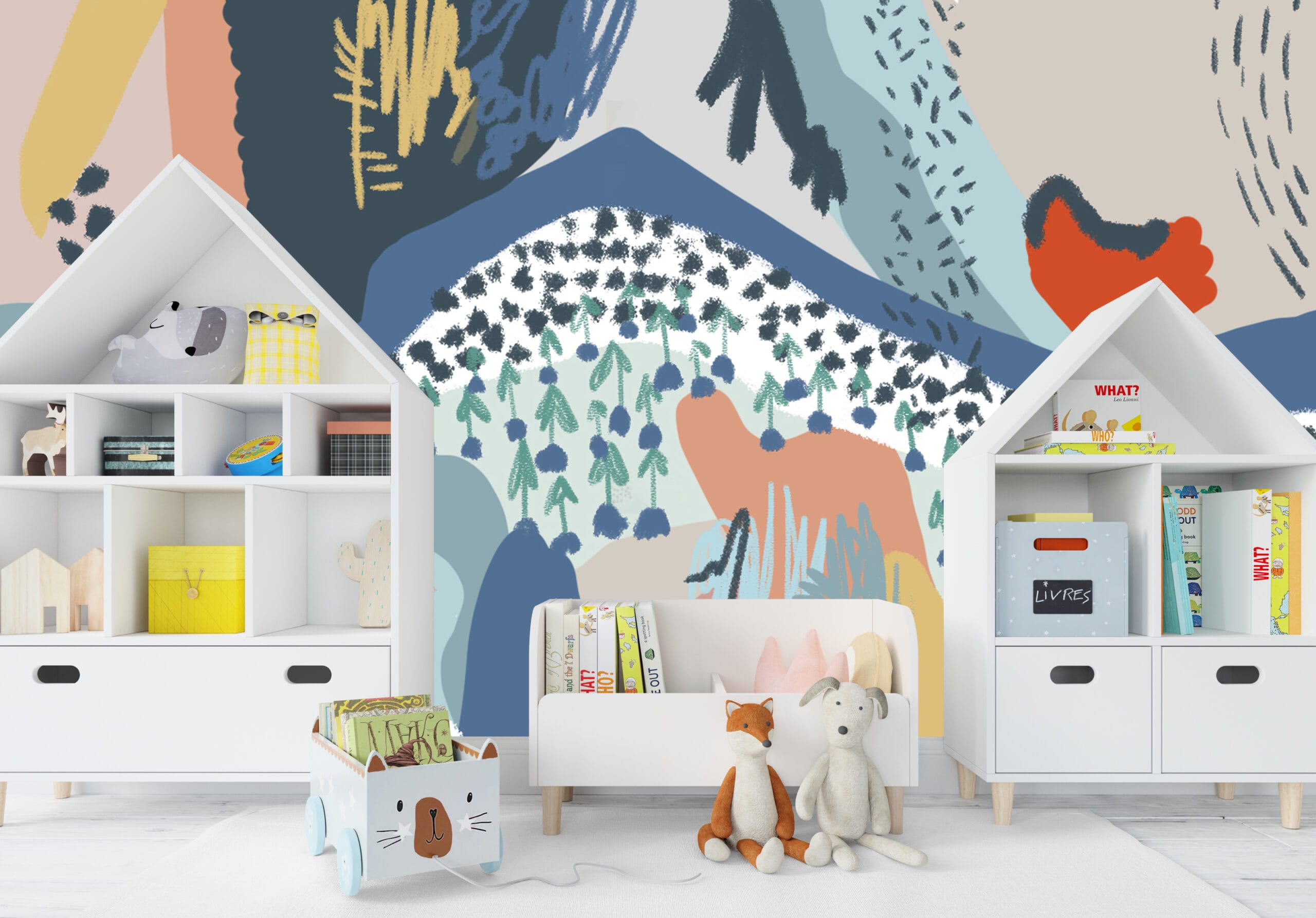 Ova prekrasna dječja tapeta u akvarelnom stilu unosi nježnu i maštovitu atmosferu u svaki kutak sobe. S motivima egzotičnih životinja, zelenih krošnji i pustinjskih brežuljaka, savršeno spaja prirodnu ljepotu i razigranost.
