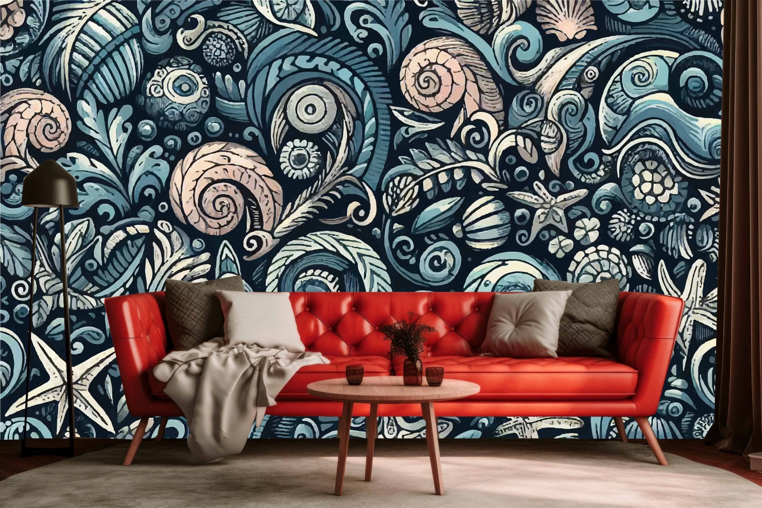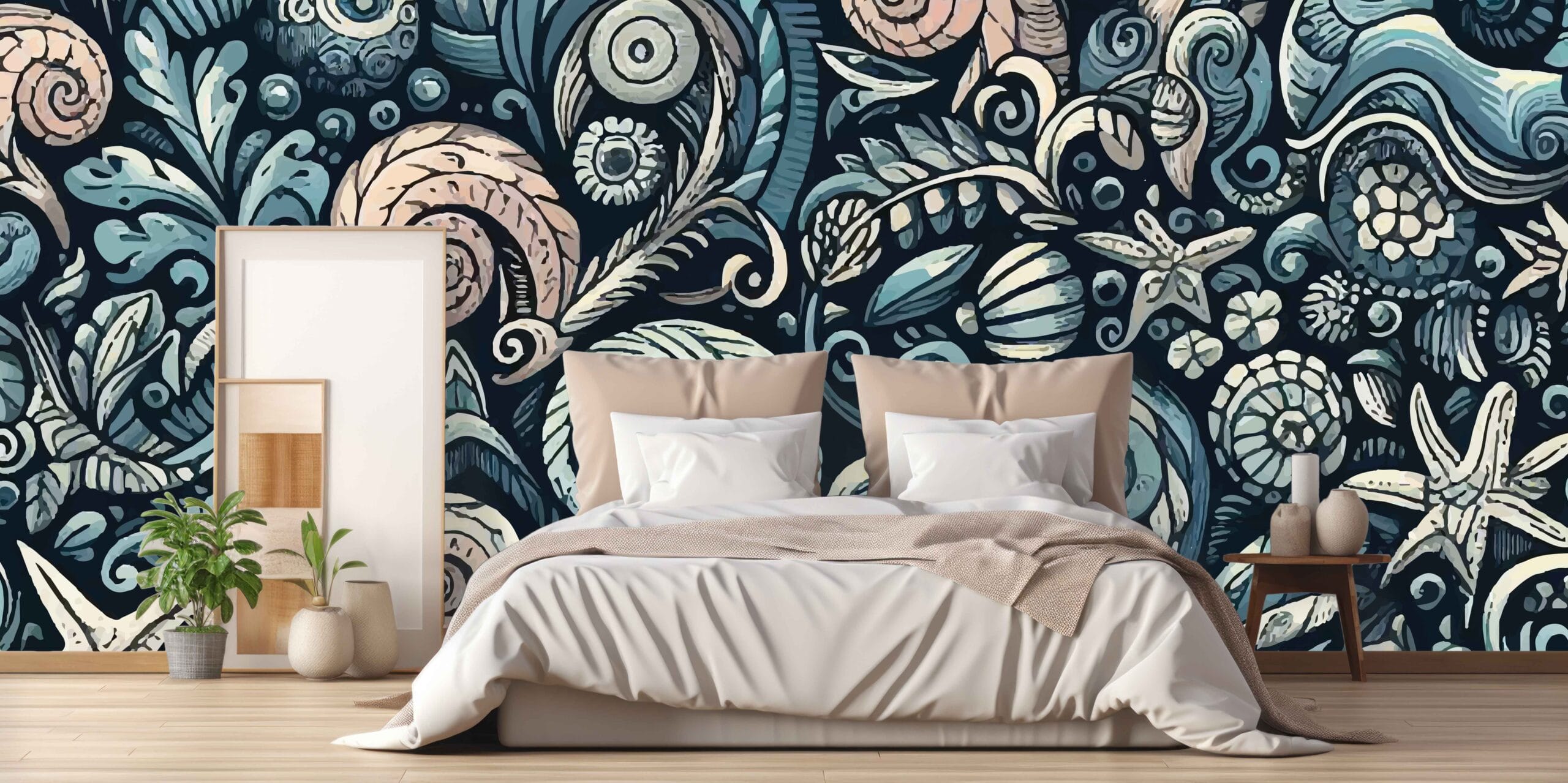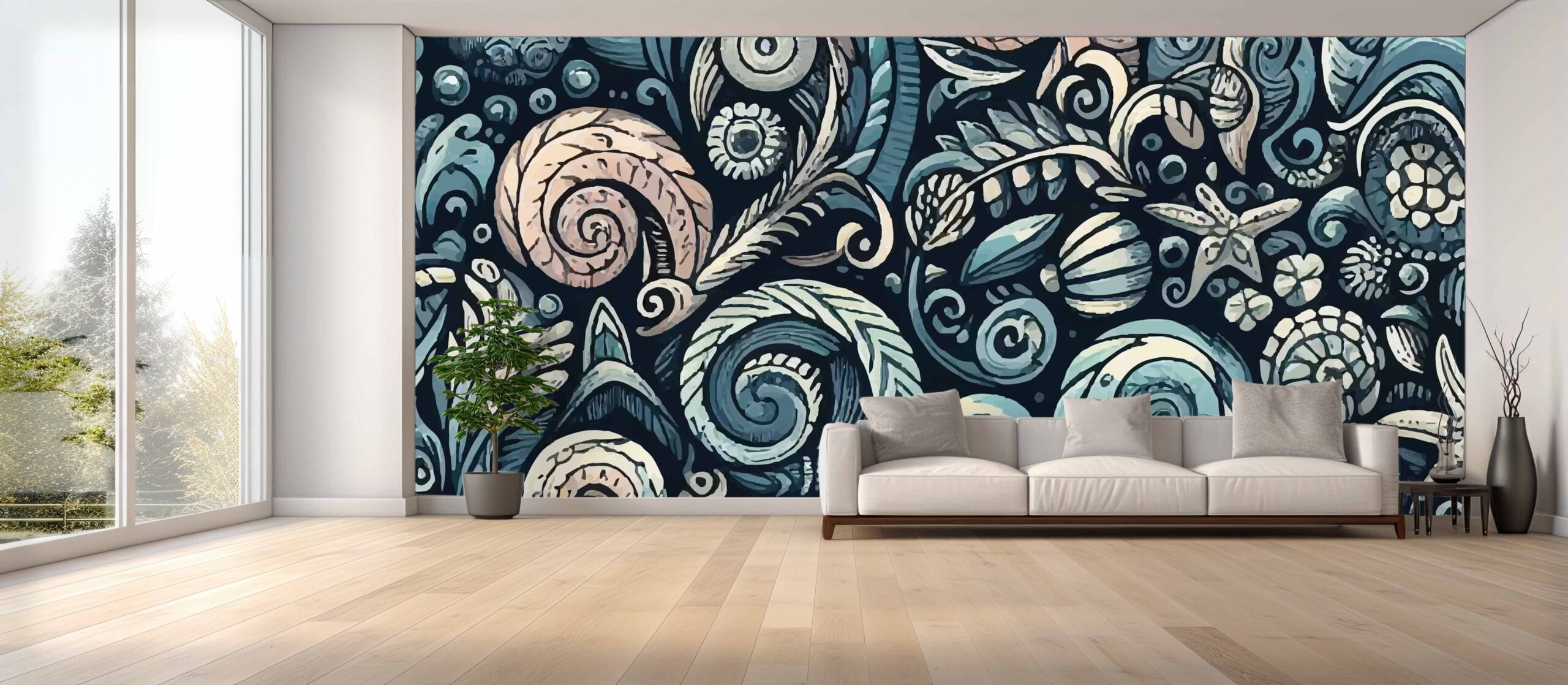 Unesite mističnu atmosferu dubokog oceana u svoj prostor s tapetom Dubina Oceana. Ovaj jedinstveni dizajn donosi apstraktne spirale, školjke i morsku vegetaciju u bogatim nijansama plave i bež boje, stvarajući osjećaj uranjanja u tajnoviti morski svijet.