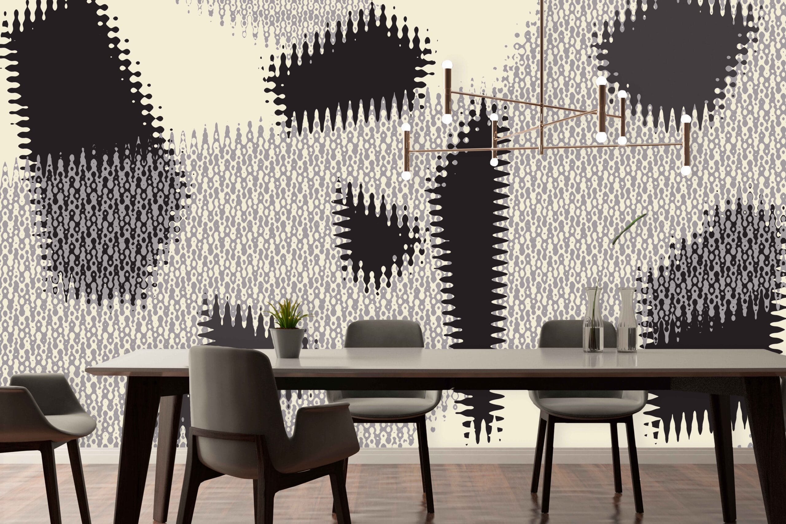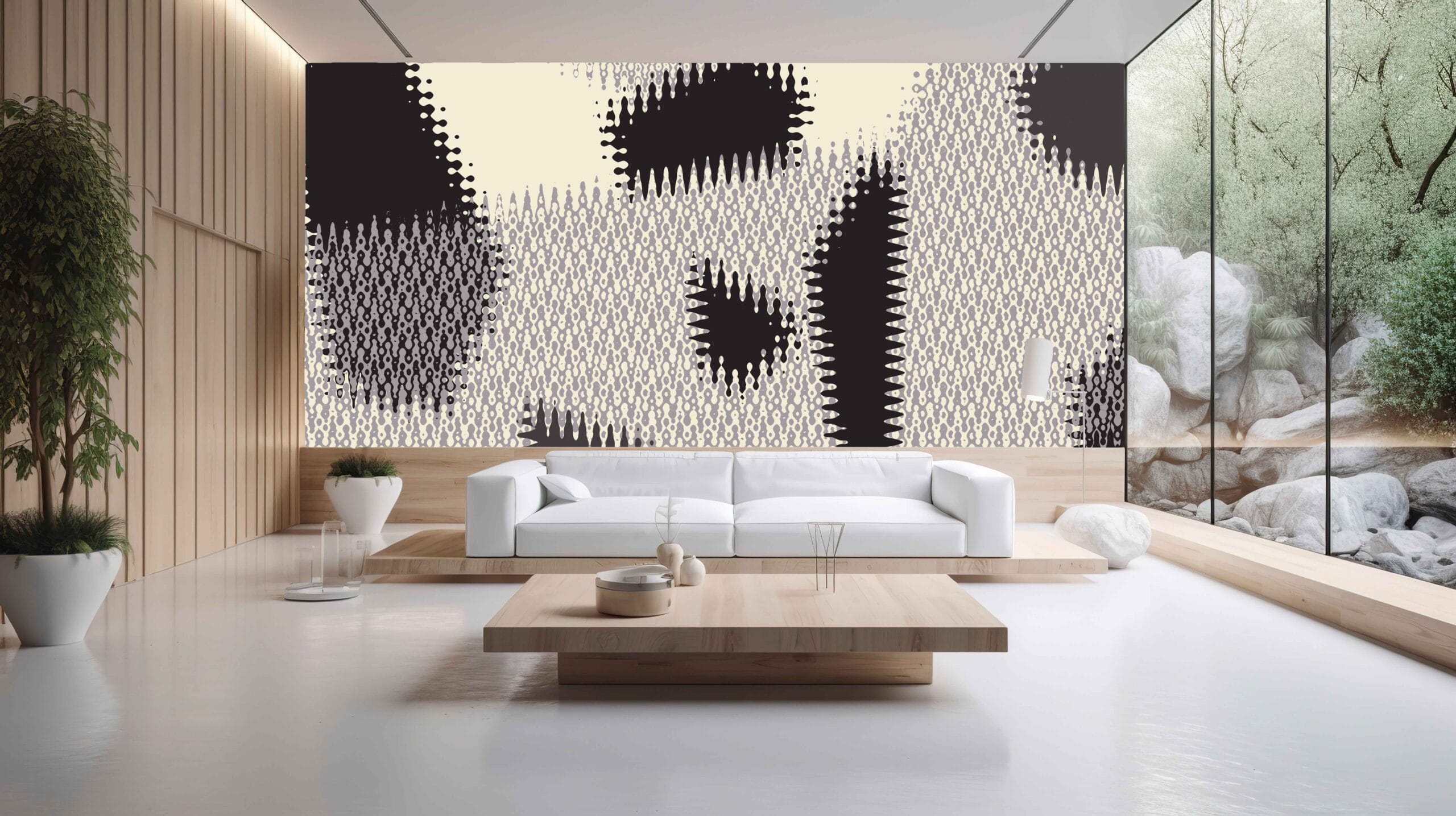 Unesite dinamičnu energiju u svoj prostor uz tapetu Grafička Distorzija. Ovaj apstraktni dizajn s kontrastnim crnim i bijelim oblicima stvara upečatljiv vizualni efekt, savršen za interijere s minimalističkim ili industrijskim stilom. Inspirirana digitalnom umjetnošću i optičkim iluzijama, ova tapeta daje dojam pokreta i dubine, pretvarajući zid u pravo umjetničko djelo.