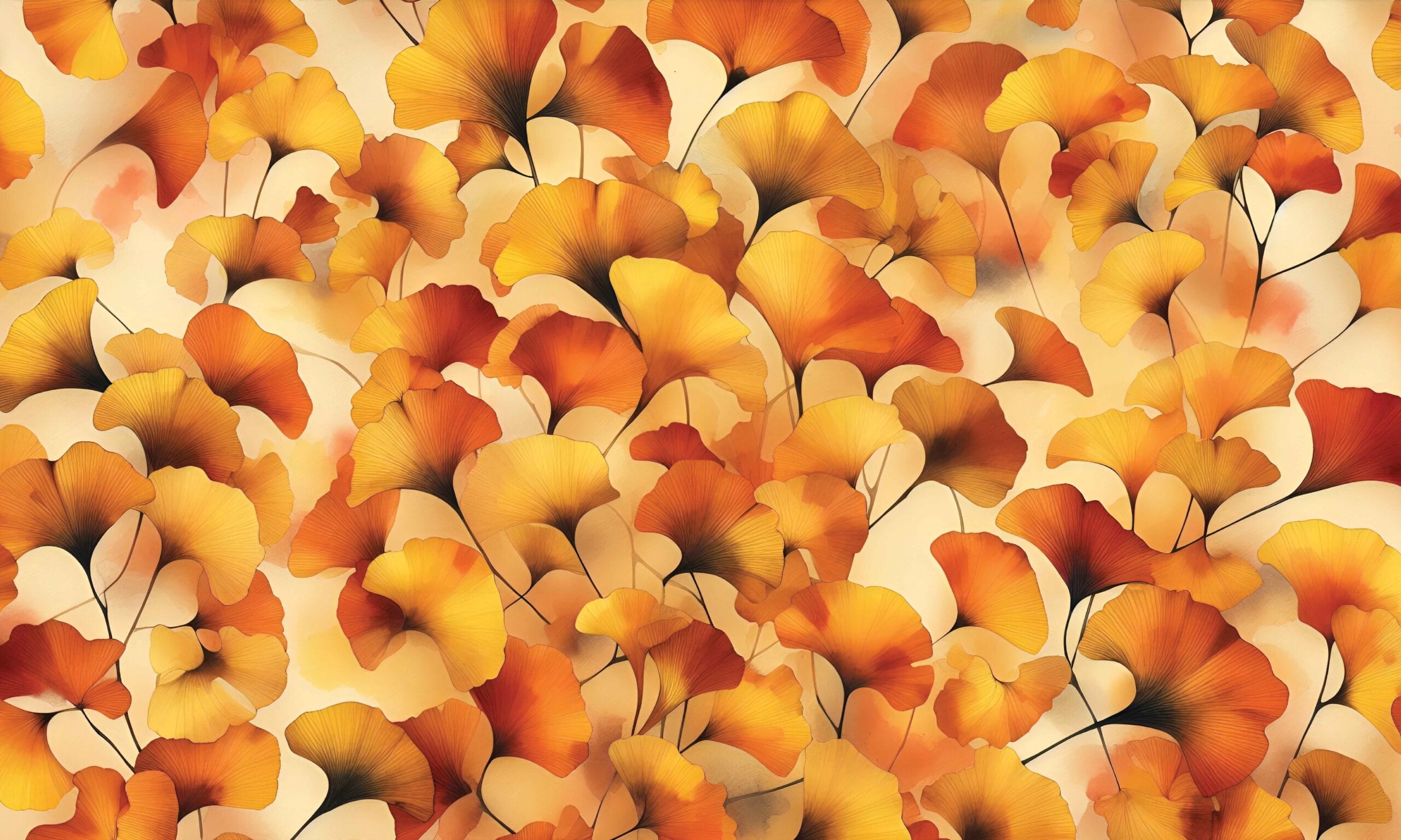 Boje: Zlatna, narančasta, jantarnaMotiv: Ginko listovi u toplim jesenskim nijansama