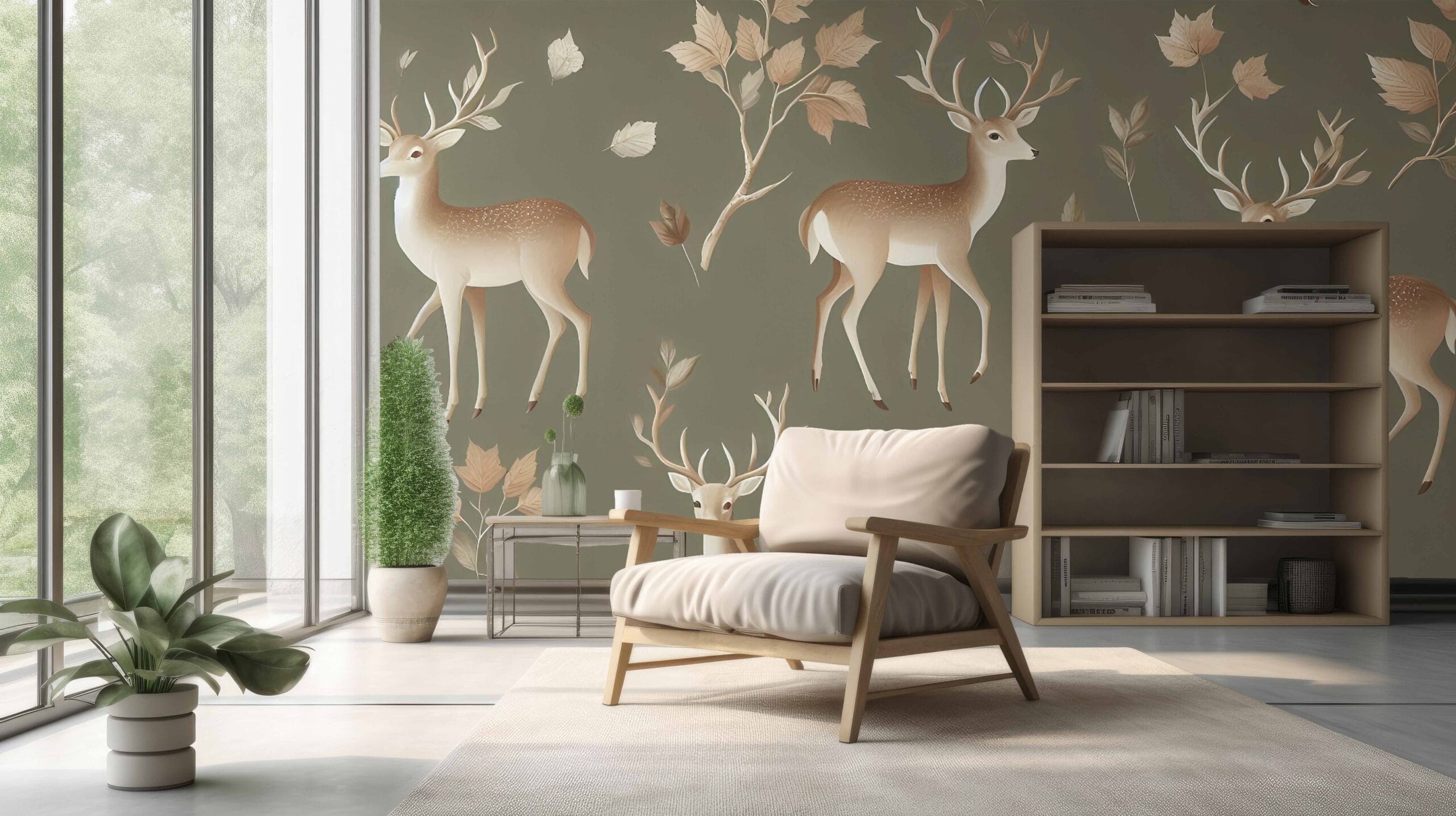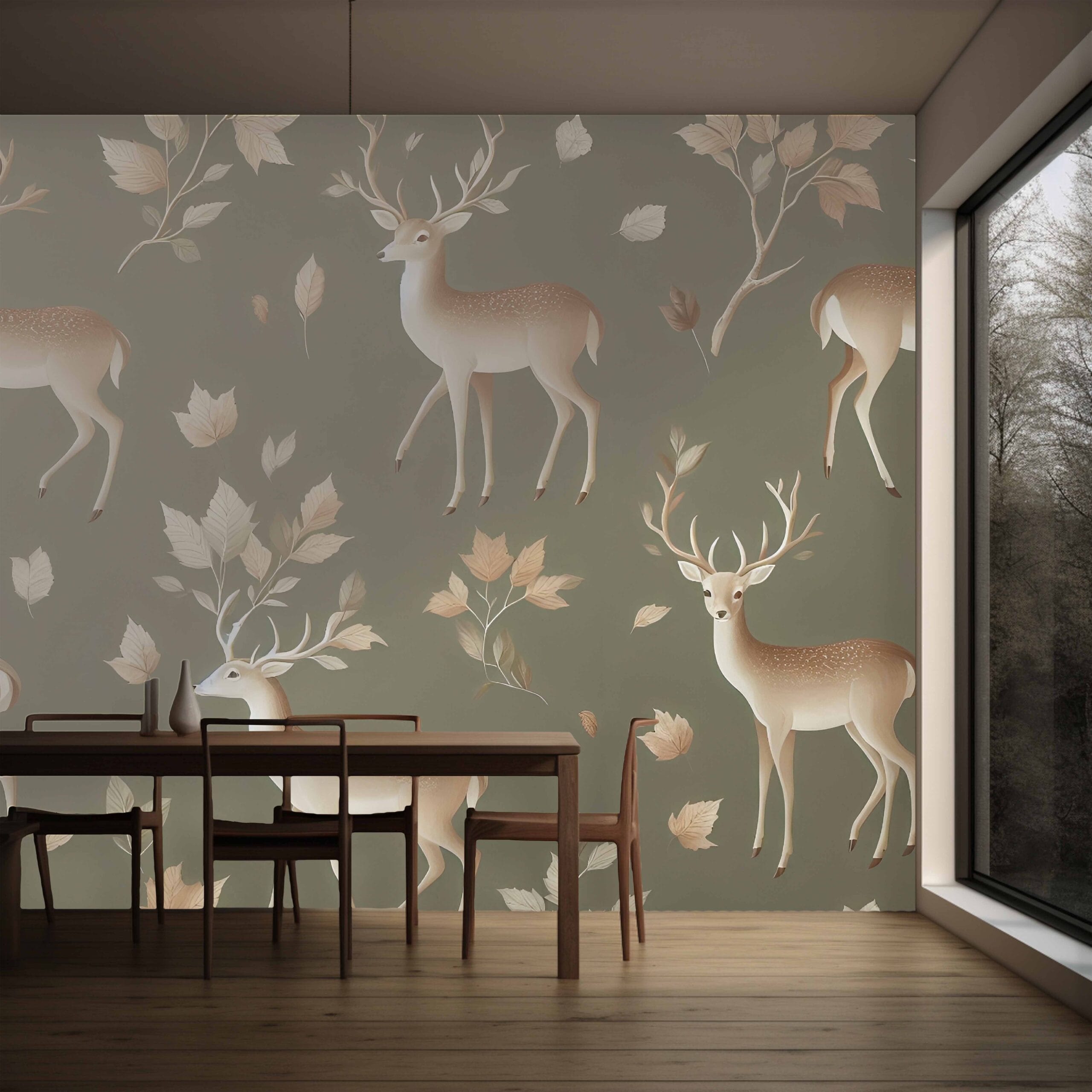 Tapeta Jesenski Šapat unosi dozu prirodne elegancije u vaš interijer. Predivni motivi jelena i jesenskog lišća na maslinasto zelenoj podlozi stvaraju osjećaj topline i harmonije. Ova tapeta savršeno se uklapa u spavaće sobe, dnevne prostore ili dječje sobe, donoseći atmosferu mira i povezanosti s prirodom.