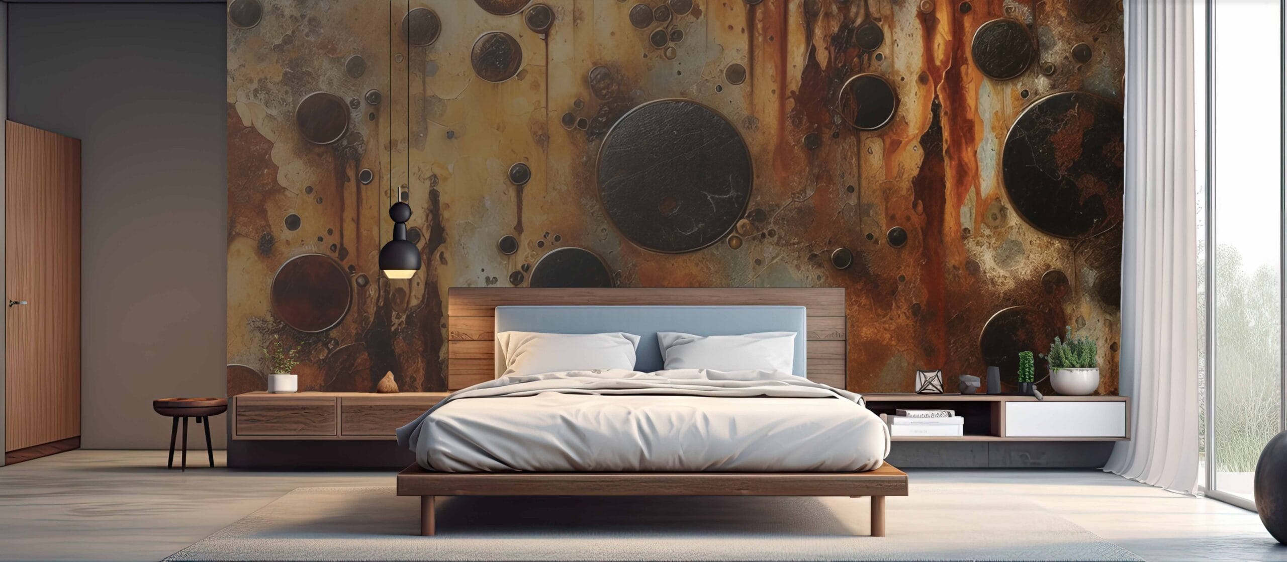 Detalji oksidacije i tekstura metala stvaraju dojam trodimenzionalnosti, što ovu tapetu čini izvanrednim dekorativnim elementom u modernim, loft ili vintage interijerima.