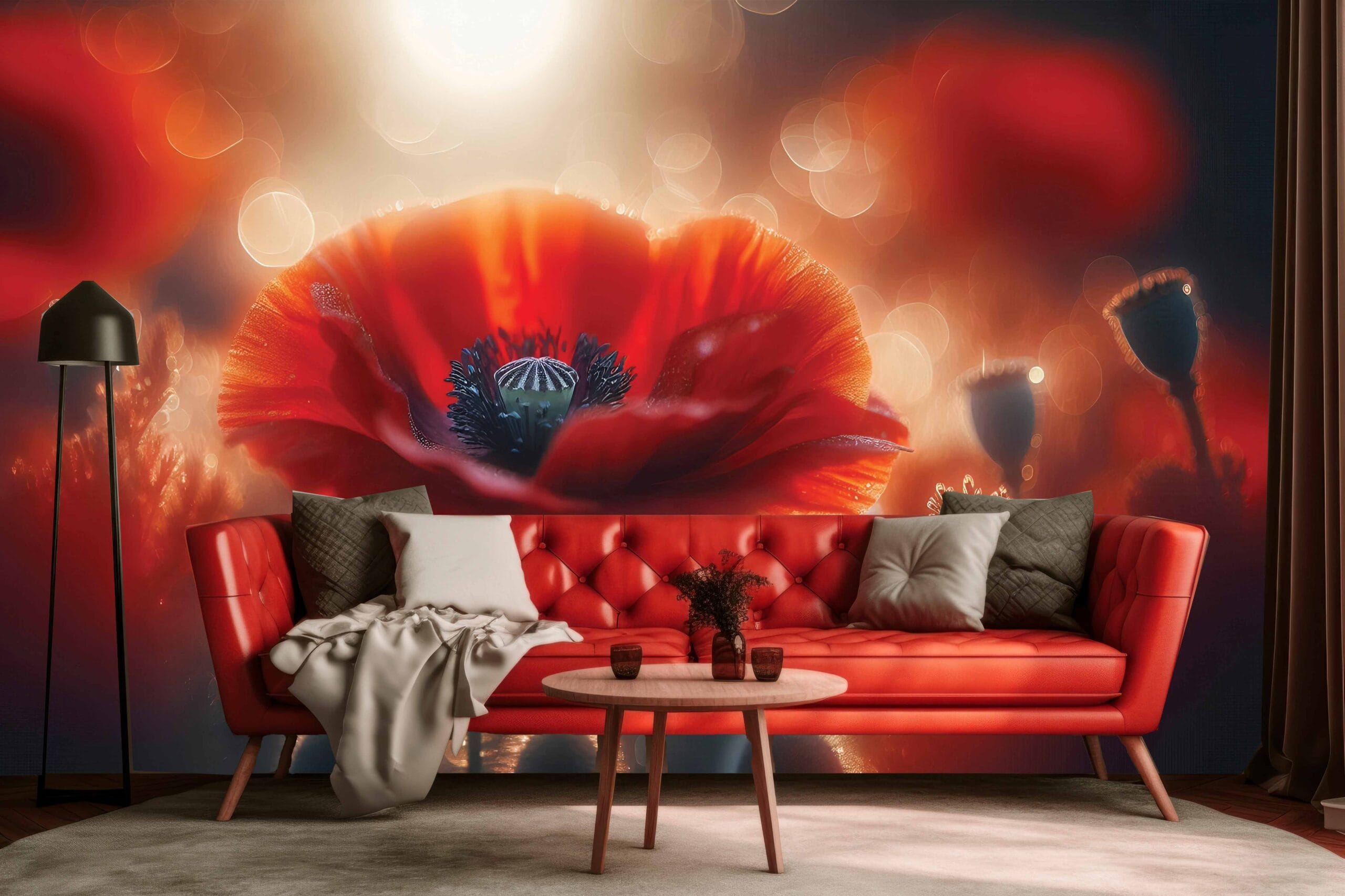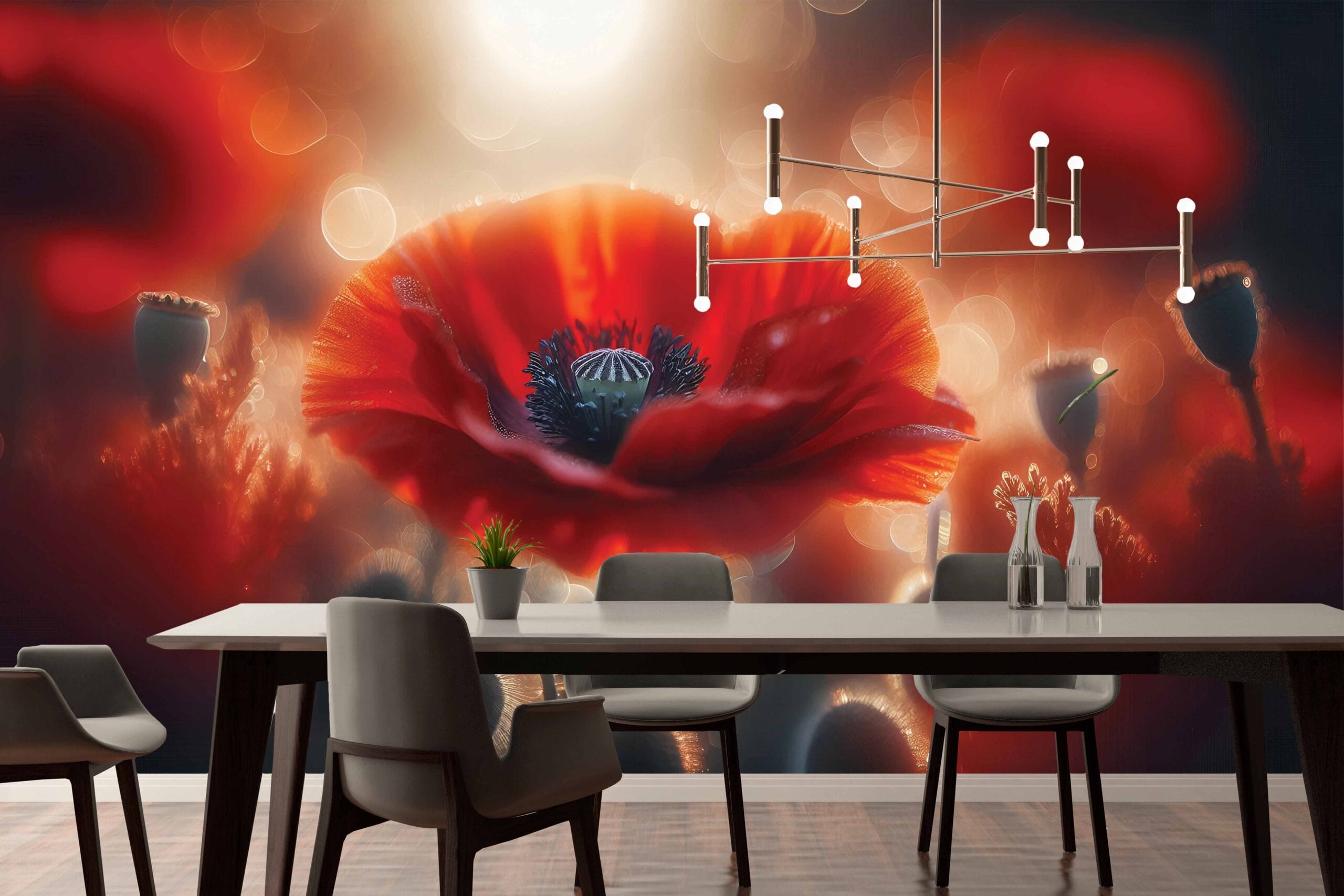 Dodajte vatrenu strast i umjetničku eleganciju svom prostoru s tapetom Plameni Mak. Ovaj impresivni prikaz krupnog maka, obasjanog toplim svjetlosnim refleksijama, stvara dramatičan vizualni efekt koji će svaki zid pretvoriti u pravo umjetničko djelo.