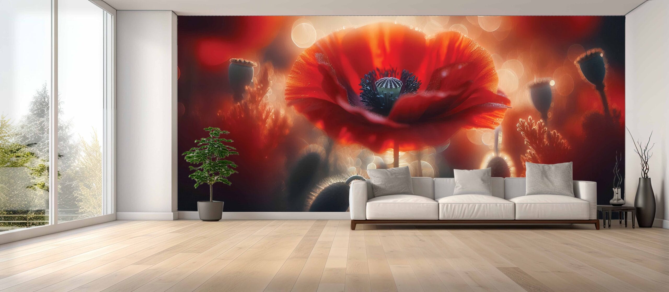 Ova tapeta je savršen odabir za ljubitelje hrabrog i sofisticiranog dizajna – bilo da želite unijeti energiju u dnevni boravak, kreirati romantičnu atmosferu u spavaćoj sobi ili dodati luksuzan akcent u hodniku. Plameni Mak donosi dinamiku i toplinu, stvarajući prostor koji odiše karakterom i elegancijom.