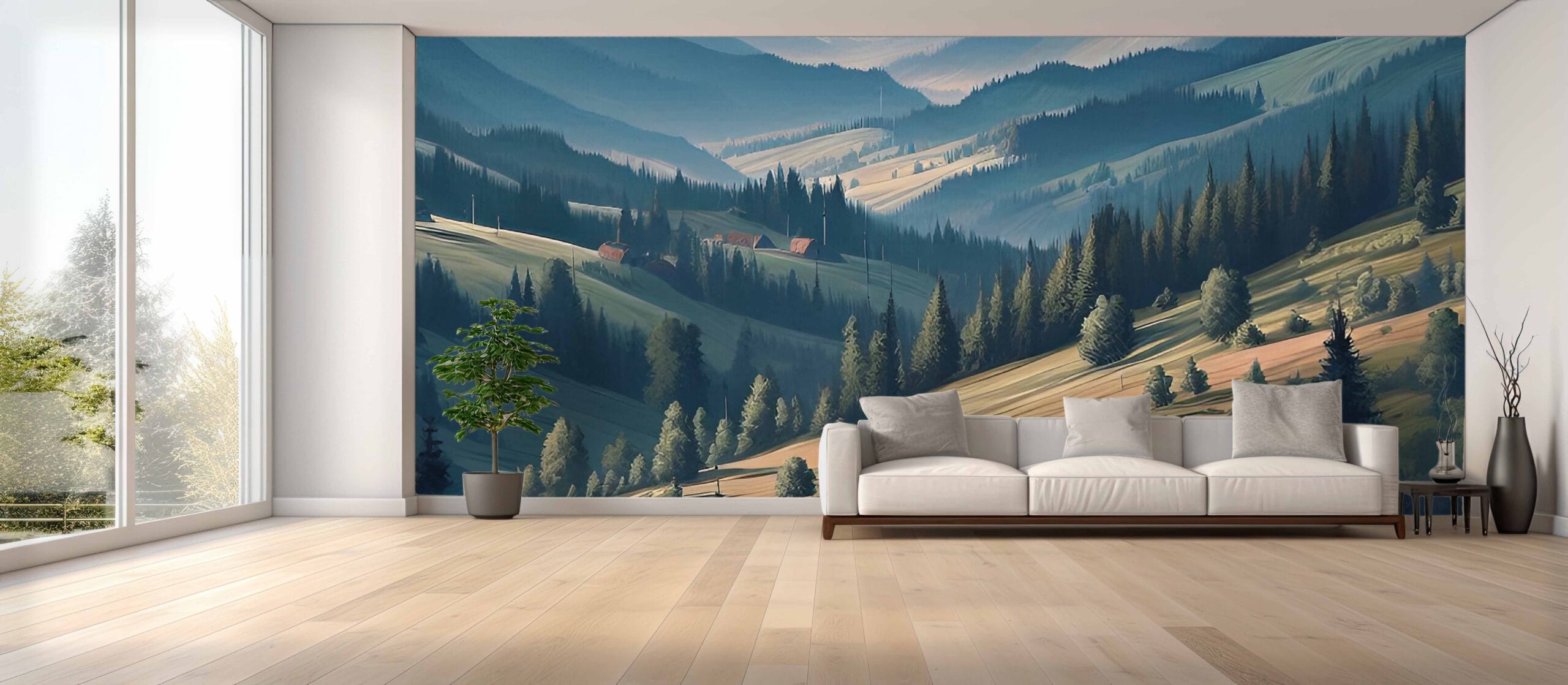 Savršeno za ljubitelje prirode i minimalističkih interijera, ova tapeta unosi osjećaj prostranosti i harmonije u svaki dom. Idealna je za dnevne boravke, spavaće sobe i prostore za opuštanje, pružajući toplinu i umirujući vizualni dojam.