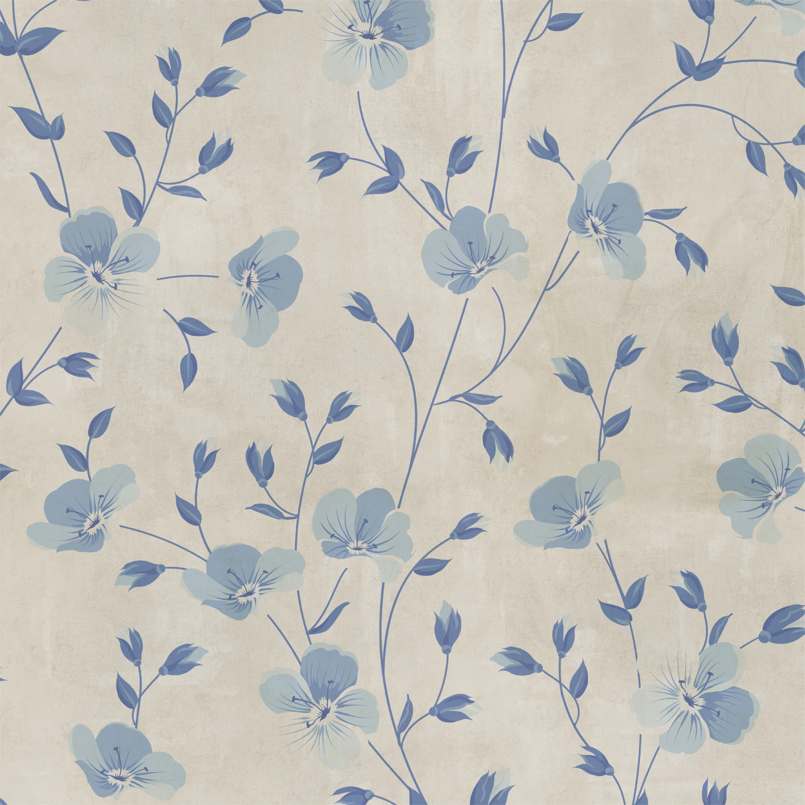 Tapeta Plavi Lan unosi suptilnu eleganciju i smirujuću atmosferu u vaš dom. Nježni plavi cvjetovi na teksturiranoj bež podlozi stvaraju savršen balans između rustikalnog šarma i modernog minimalizma, čineći prostor prozračnim i ugodnim za boravak.