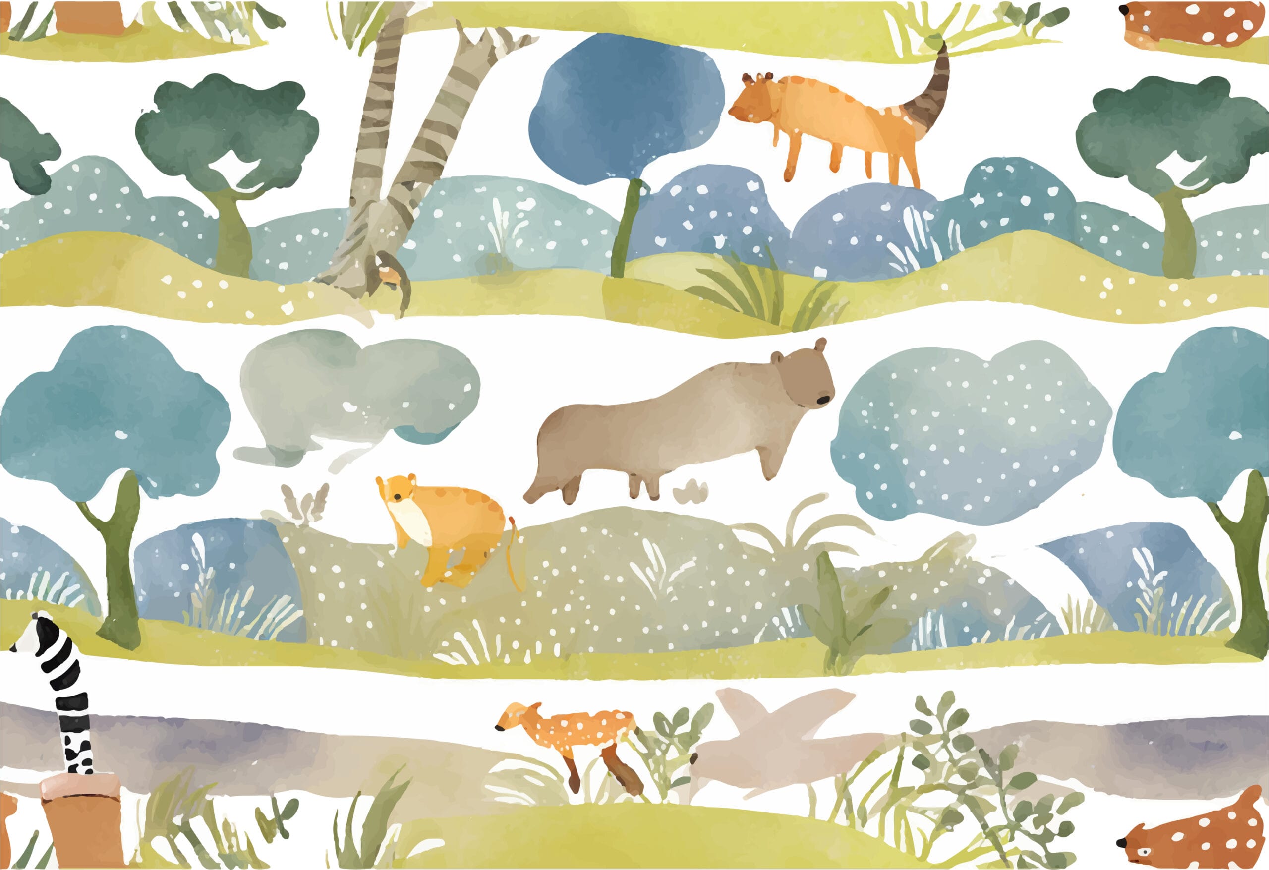 Tapeta Šumska Družina donosi čaroliju prirode i prijateljstva izravno u dječju sobu. Kroz nježne akvarel ilustracije, pratimo veselu ekipu životinja — od mirne kapibare do razigranog lemura — u njihovom istraživanju šumskih brežuljaka. Prozračan dizajn i meki tonovi stvaraju umirujuću, ali inspirativnu atmosferu idealnu za dječje snove i svakodnevnu igru.