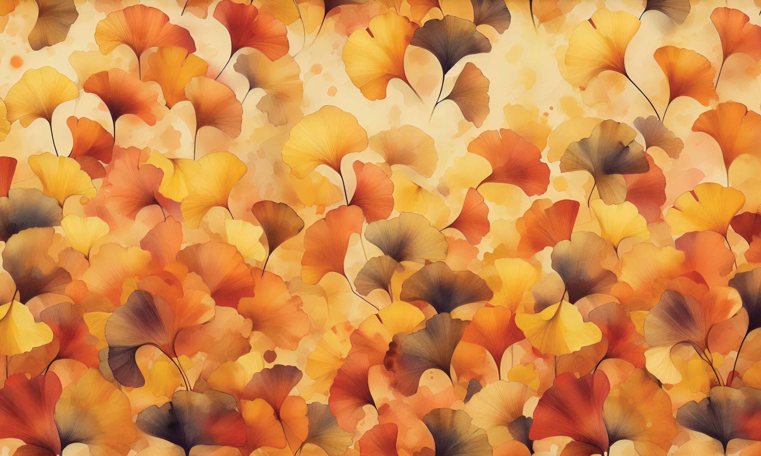 Boje: Zlatnožuta, jantarna, narančasta, bakrenaMotiv: Gingko listovi u toplim jesenskim tonovima